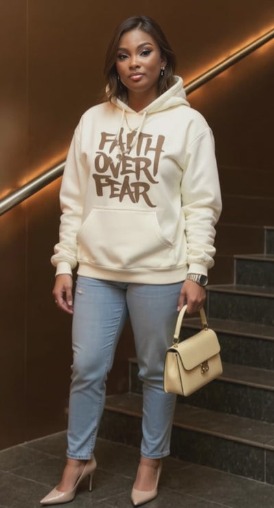 Stand fearless in style. The Faith Over Fear hoodie is designed for warriors who refuse to bow to doubt. Every wear is a shield of courage reminding you that faith conquers what fear tries to steal.
